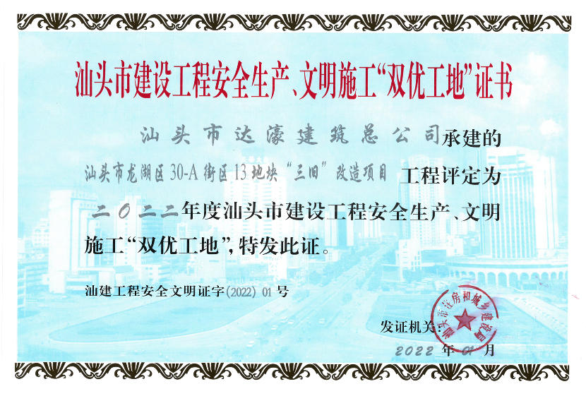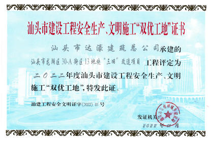 2022年度汕头市建设工程安全生产、文明施工“双优工地”