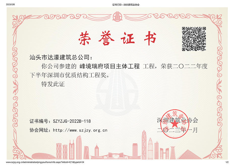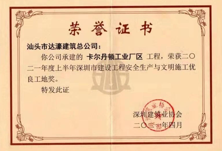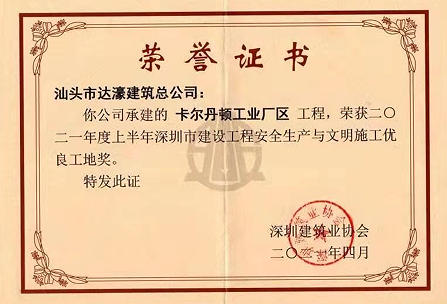 2021年度上半年深圳建设工程安全生产与文明施工优良工地奖
