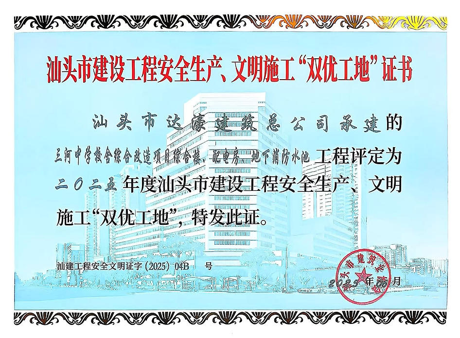 2025年度汕头市建设工程安全生产、文明施工“双优工地”
